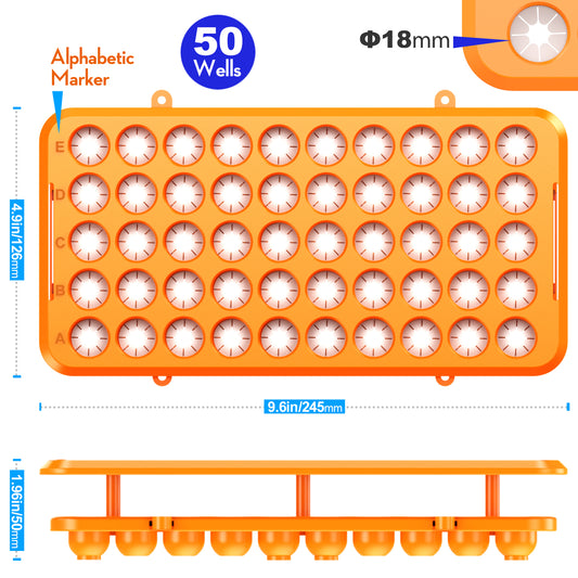 2 Pack Plastc Vial Rack 50 Holds Diameter 12mm 1.5/2ml Vials Centrifuge Tube Racks Stackable Lab Supplies by Ks-Tek