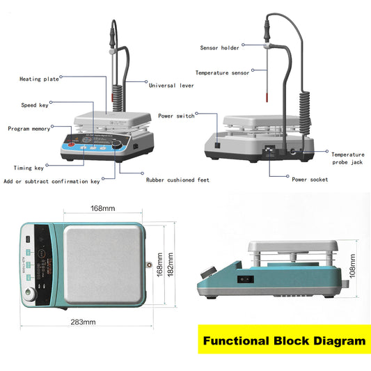 Magnetic Hotplate Stirrer 100 -2000 RPM Heating Power Hot Plate Stirrer with Casting Aluminum and Ceramic Spraying Hot Plate ,Heating Power Max 300 °C ,500W,6L