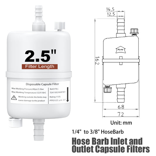 PTFE /PES Capsule Filters with Hose Barb for 1/4" to 3/8" Tube Sterile Filling Bell Filter Pore Size 0.22um Length 2.5" Individual Packaging,1/pkRegular price From $42.99 USDRegular priceUnit price per-