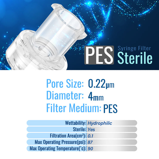 Sterile hydrophilic Syringe Filters,PES Membrane 0.22μm/0.45um Pore Size,4mm Diameter,25pcs/100 Pcs Individually Packed by Ks-TekRegular price From $13.99 USDRegular priceUnit price per-