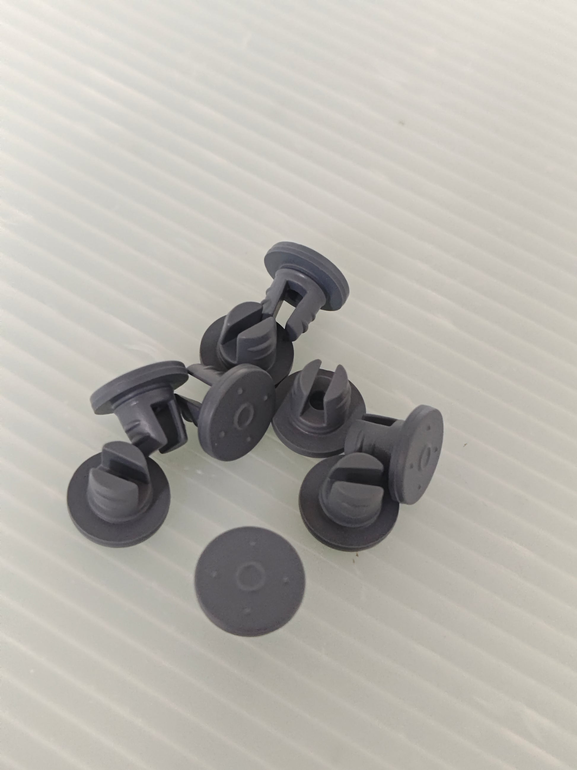 1000 pcs of 13mm amber 10ml bottles, 1000 pcs 13mm rubber stoppers with legs, and 1000 pcs 13mm silver aluminium caps.