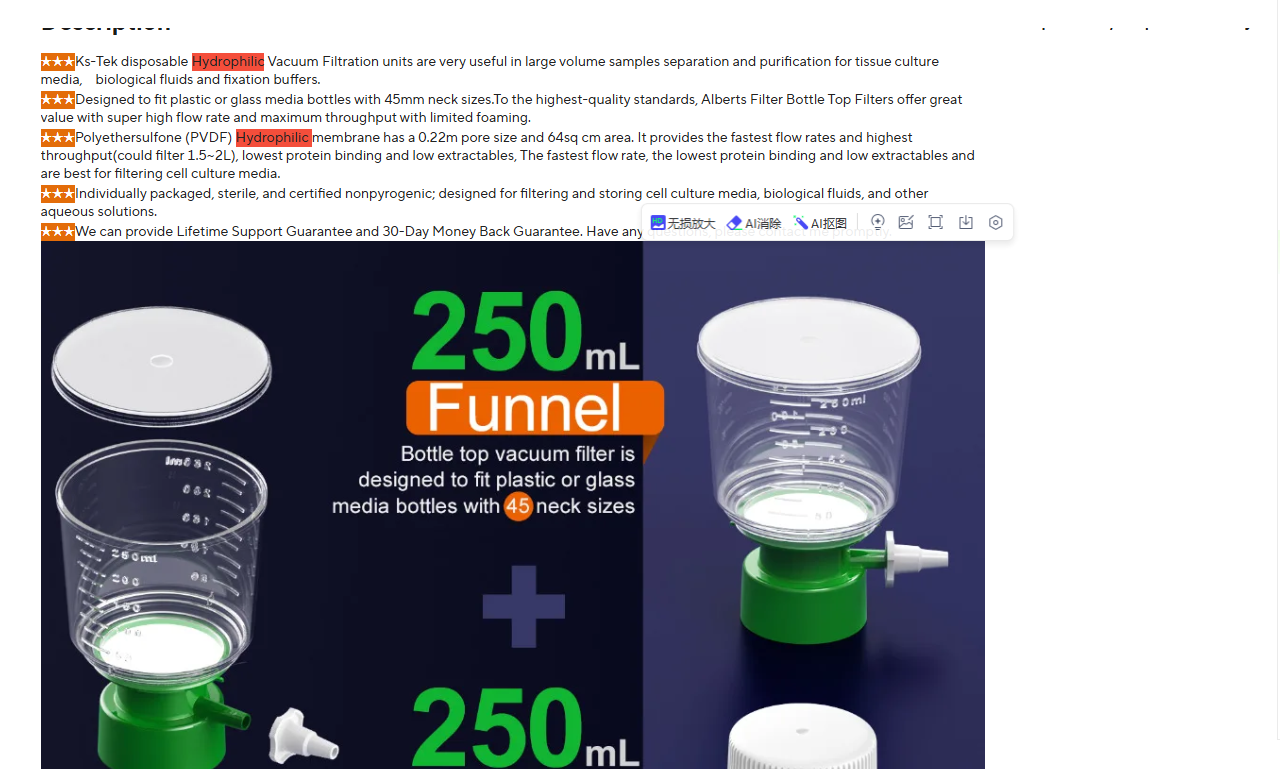 ★★★Ks-Tek disposable hydrophobic Vacuum Filtration units are very useful in large volume samples separation and purification for tissue culture media, biological fluids and fixation buffers.