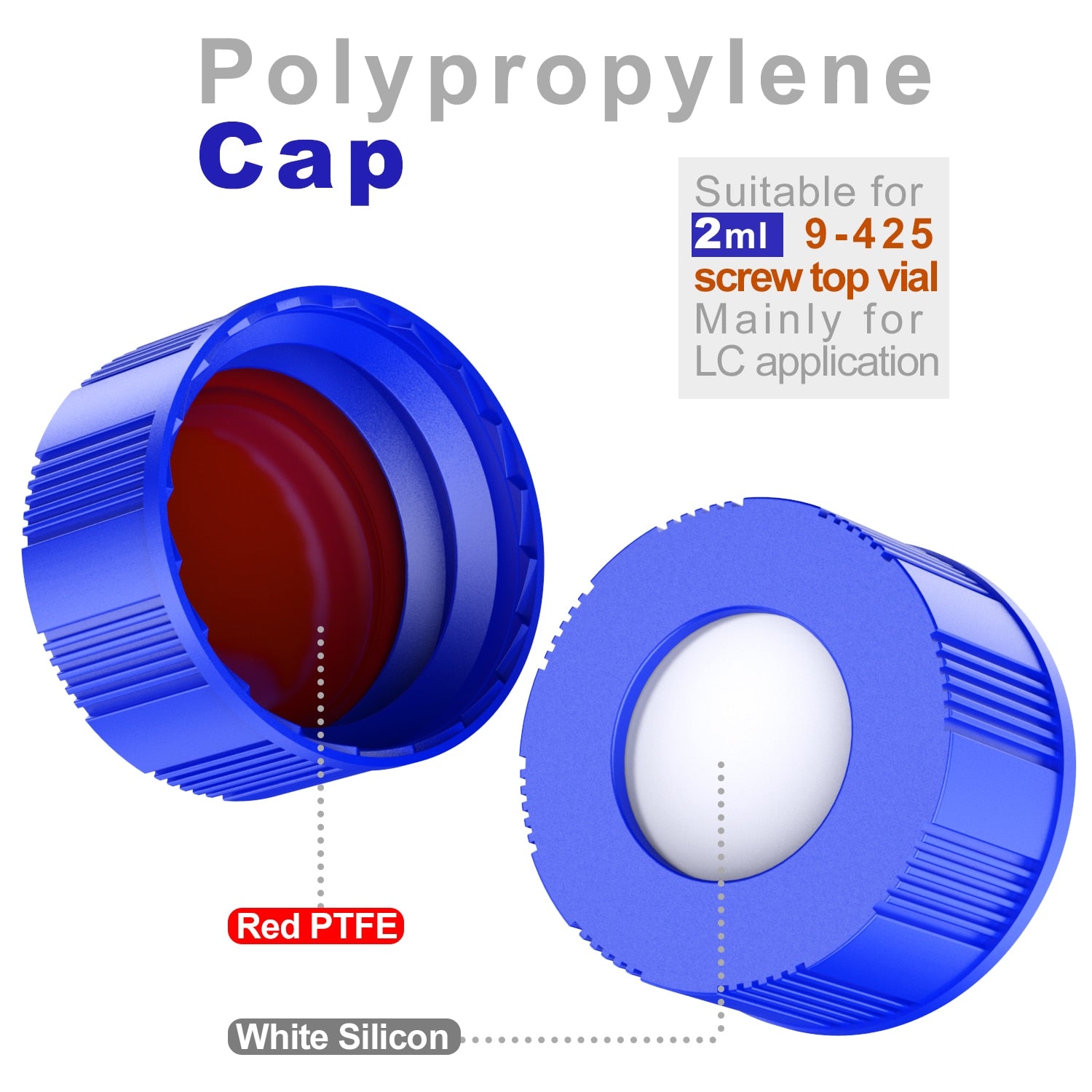 Ks-Tek 2ml Sample Vials and Caps & Septa (Blue PTFE/White Silicone Liner)