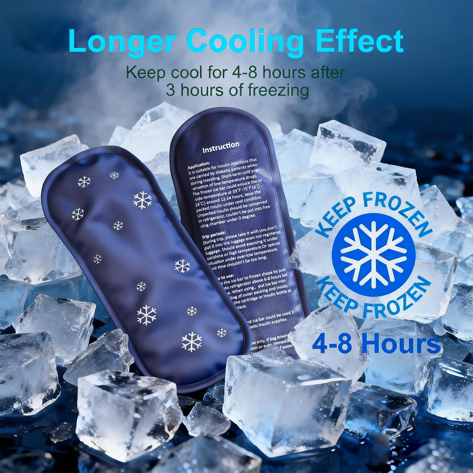 Cooling duration may vary based on external conditions. Unused insulin should be refrigerated and never frozen.This insulin travel case maintains an internal temperature of 39°F–75°F (4°C–24°C) for 12–24 hours once the ice packs are fully frozen.