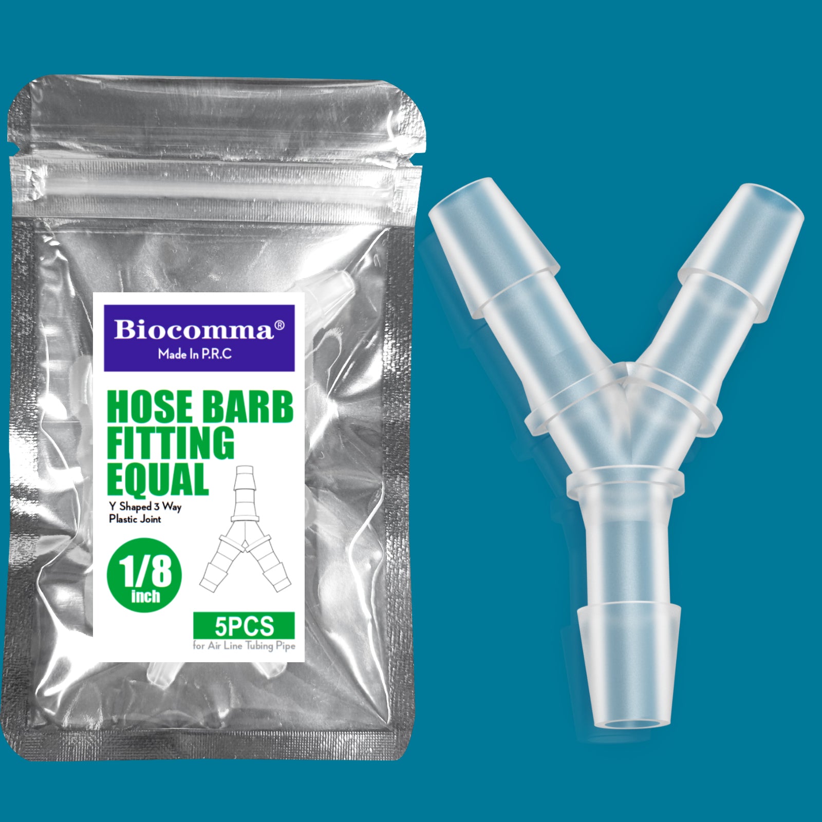 Size:Hose barb fitting equal barbed Y shaped 3 Way ,1/2", 1/4", 1/8", 3/8", 3/16", 5/8", 5/16", 7/16"Hose ID.