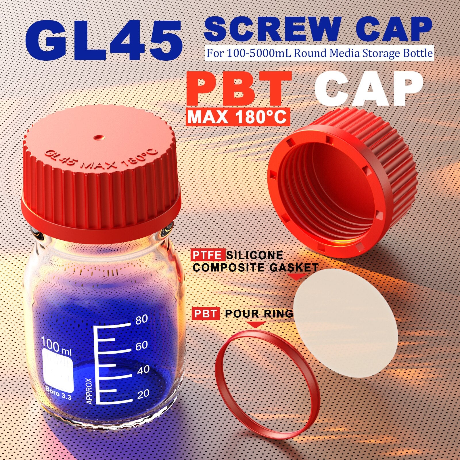 Ks-Tek GL45 PBT/PP Screw Cap,with Pour Ring,PTFE Silecone Gasket,Silecone Gasket,PBT Pour Ring
