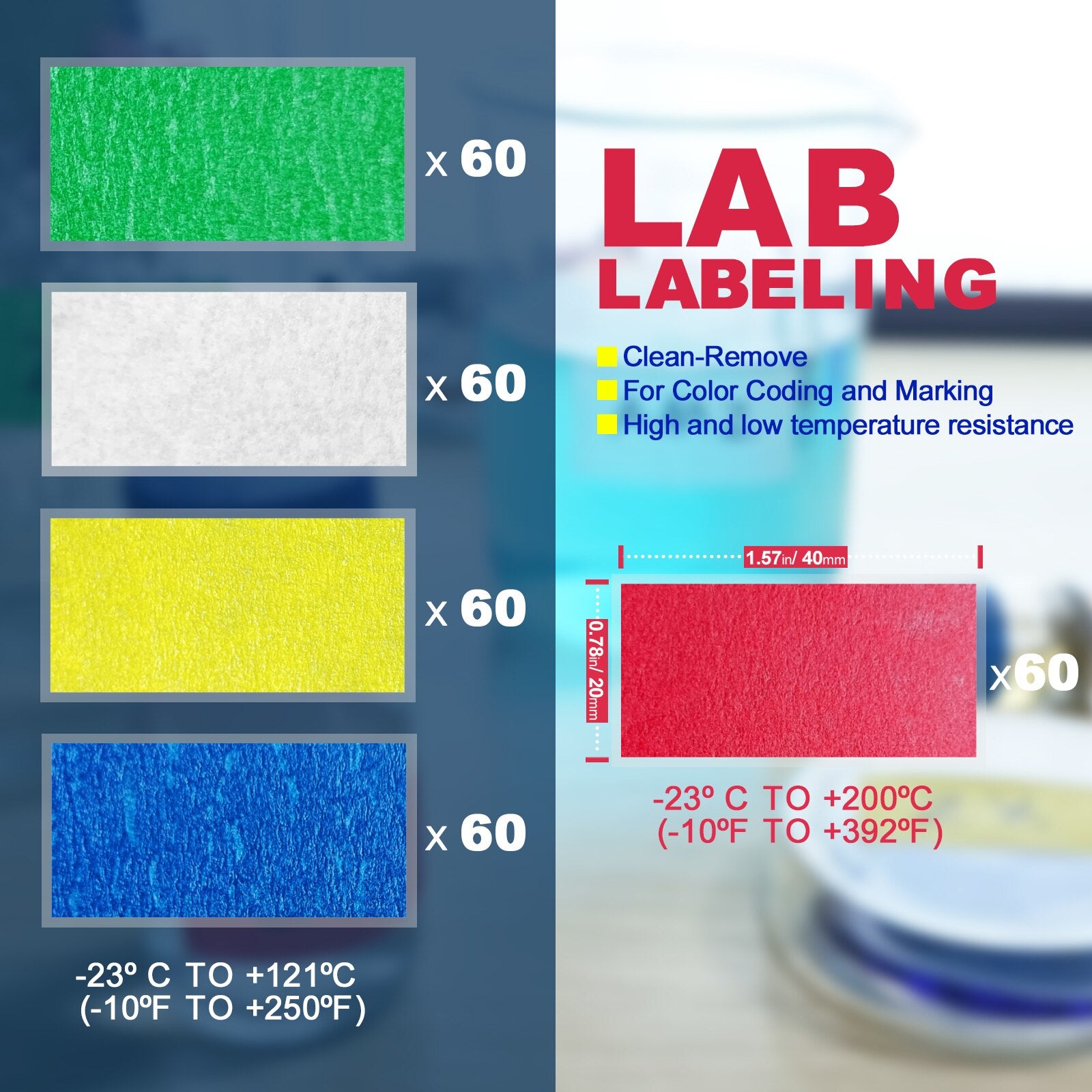 Lab Labels 40X20mm Red Green Blue White Yellow Clean-Remove Withstand High Temperature for Color Coding and Marking