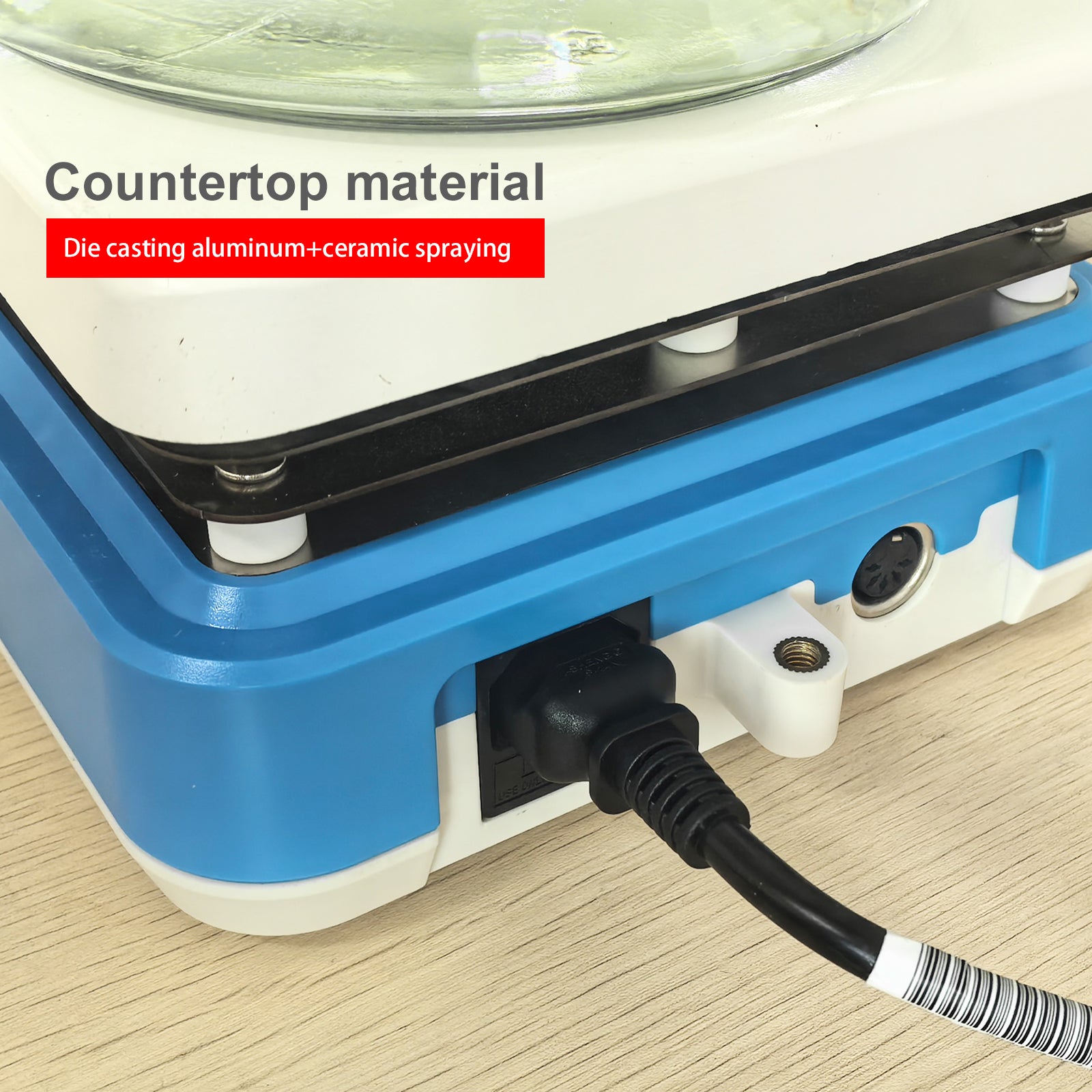 Heating Plate : The magnetic stir plate is made of casting aluminum and ceramic spraying , with fast warm-up and uniform heating. Also high-temperature resistance, wear resistance, chemical resistance, and strong magnetism