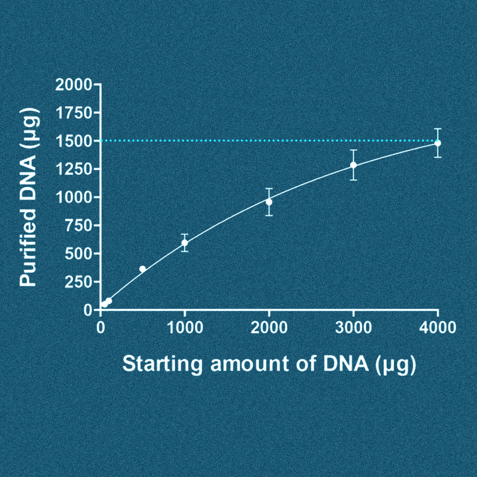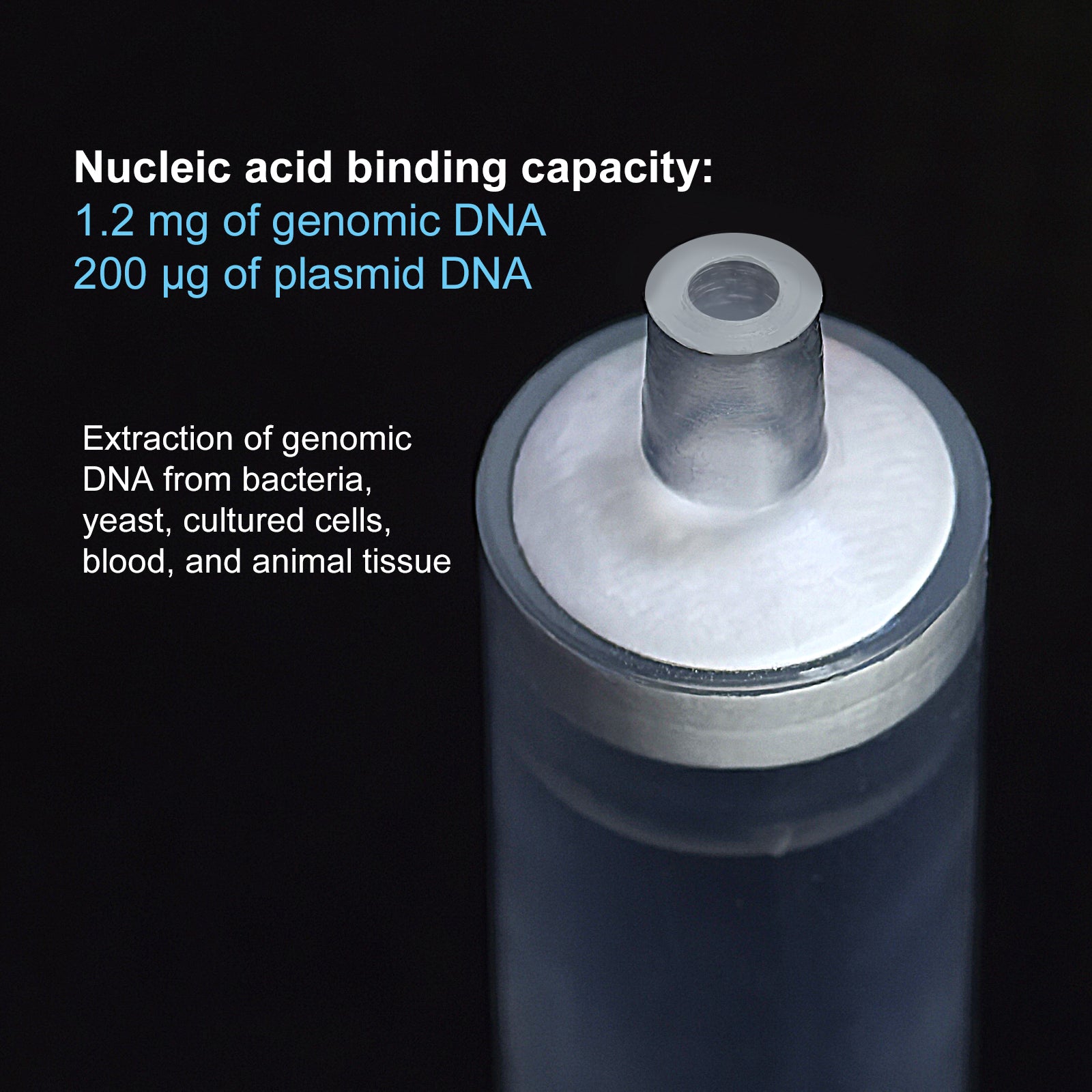 Nucleic acid binding capacity: 1.2 mg of genomic DNA, 100-200 μg of plasmid DNA (MIDI)
