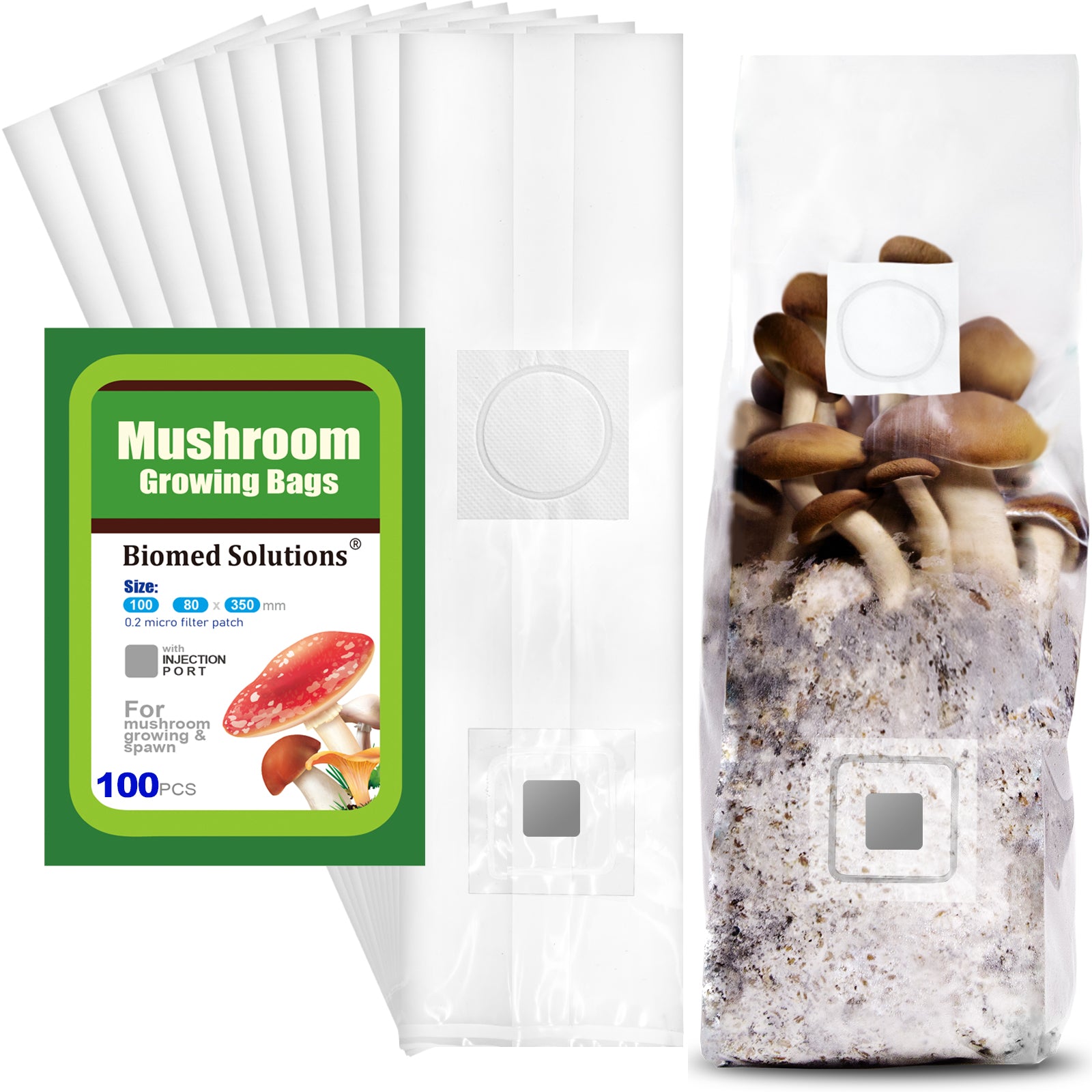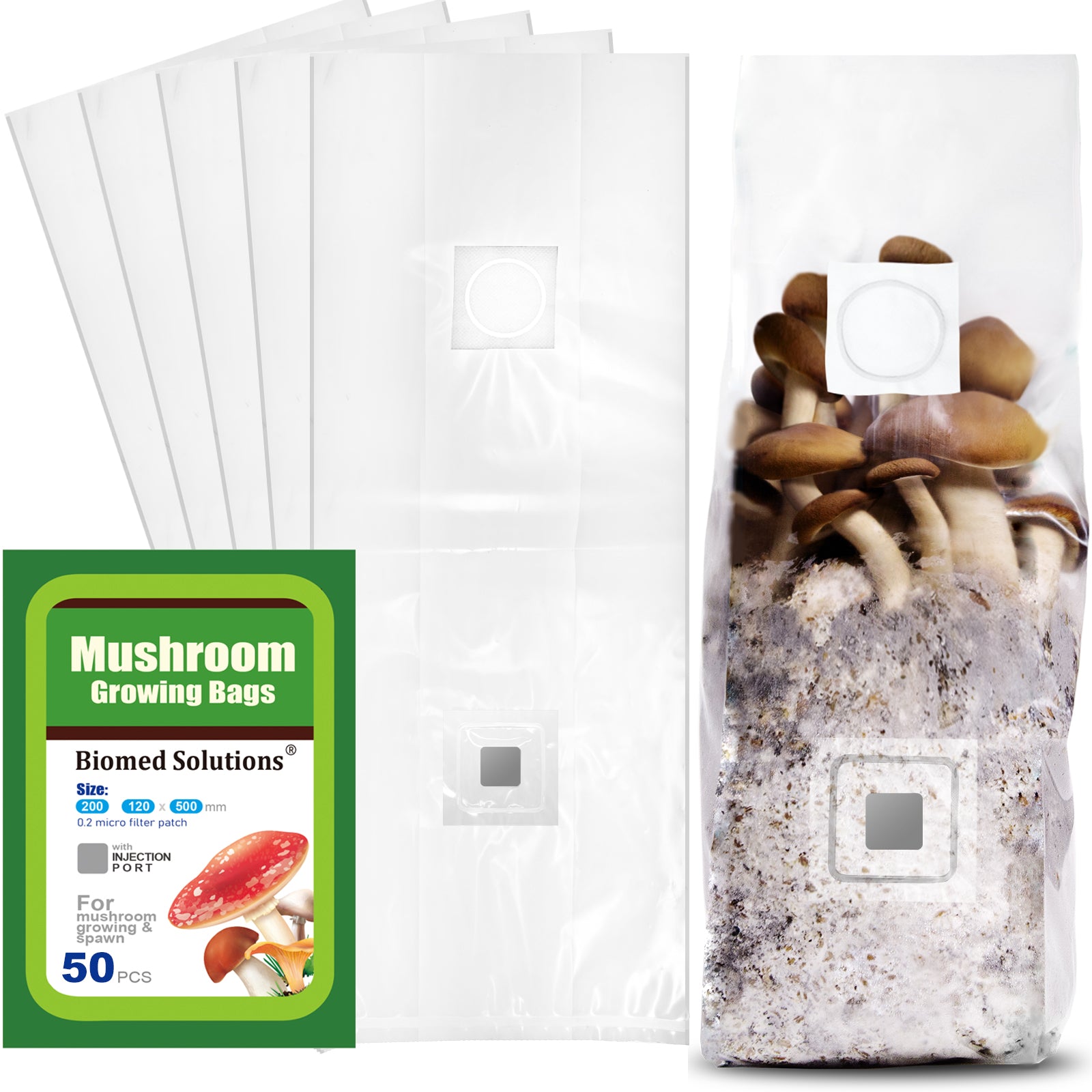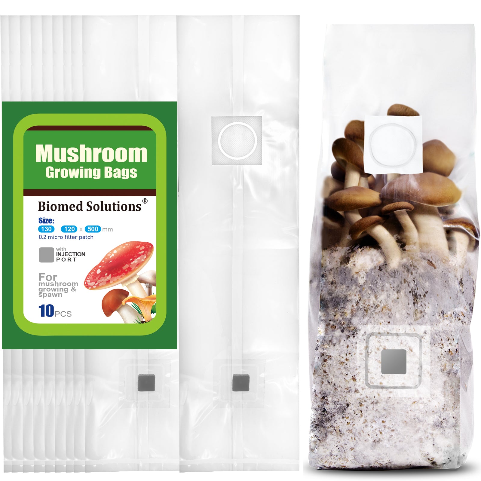Mushroom Grow Bags with Injection Port and 0.2 Micron Gas Exchange Filter Patch, 6 Mil Polystyrene Grow Bag for Edible Mycelium Grain Cultivation