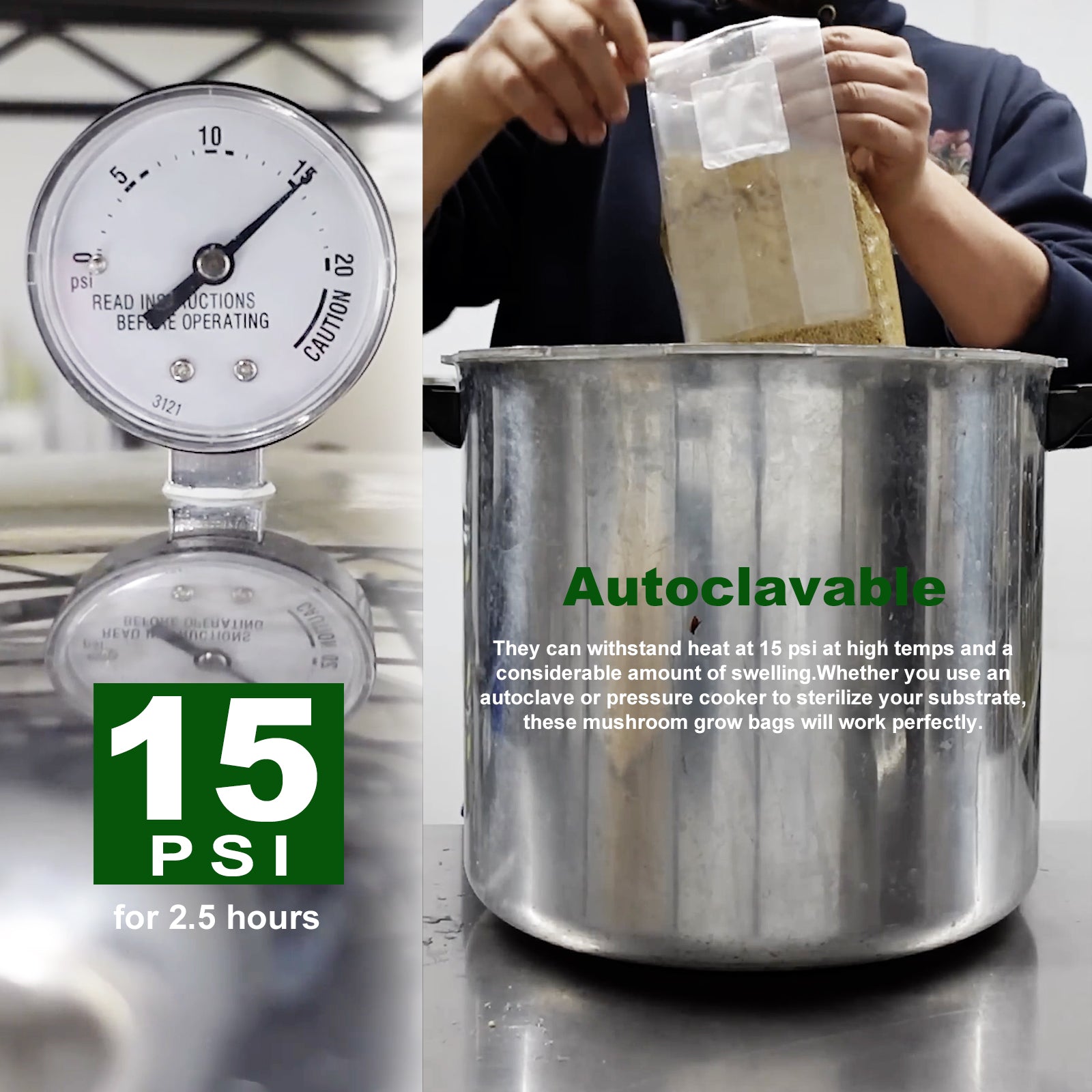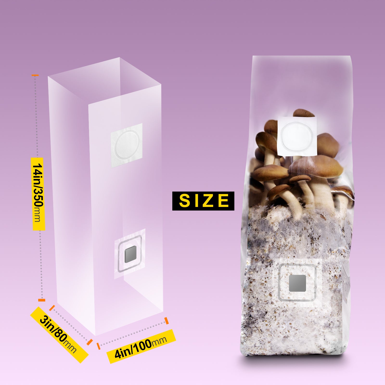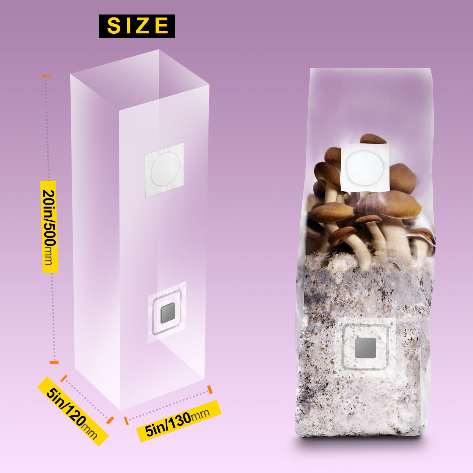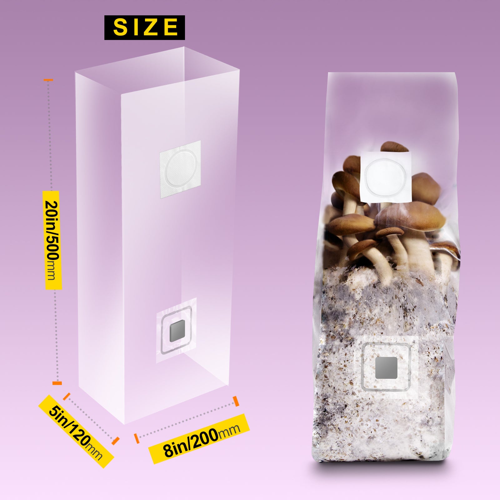 The mycelium grow bag made of durable, breathable material, it create the ideal conditions for mycelium development.Ample space for mycelium growing and benefit from air exchange which a critical factor for fostering , vigorous mushroom growth from start to finish.