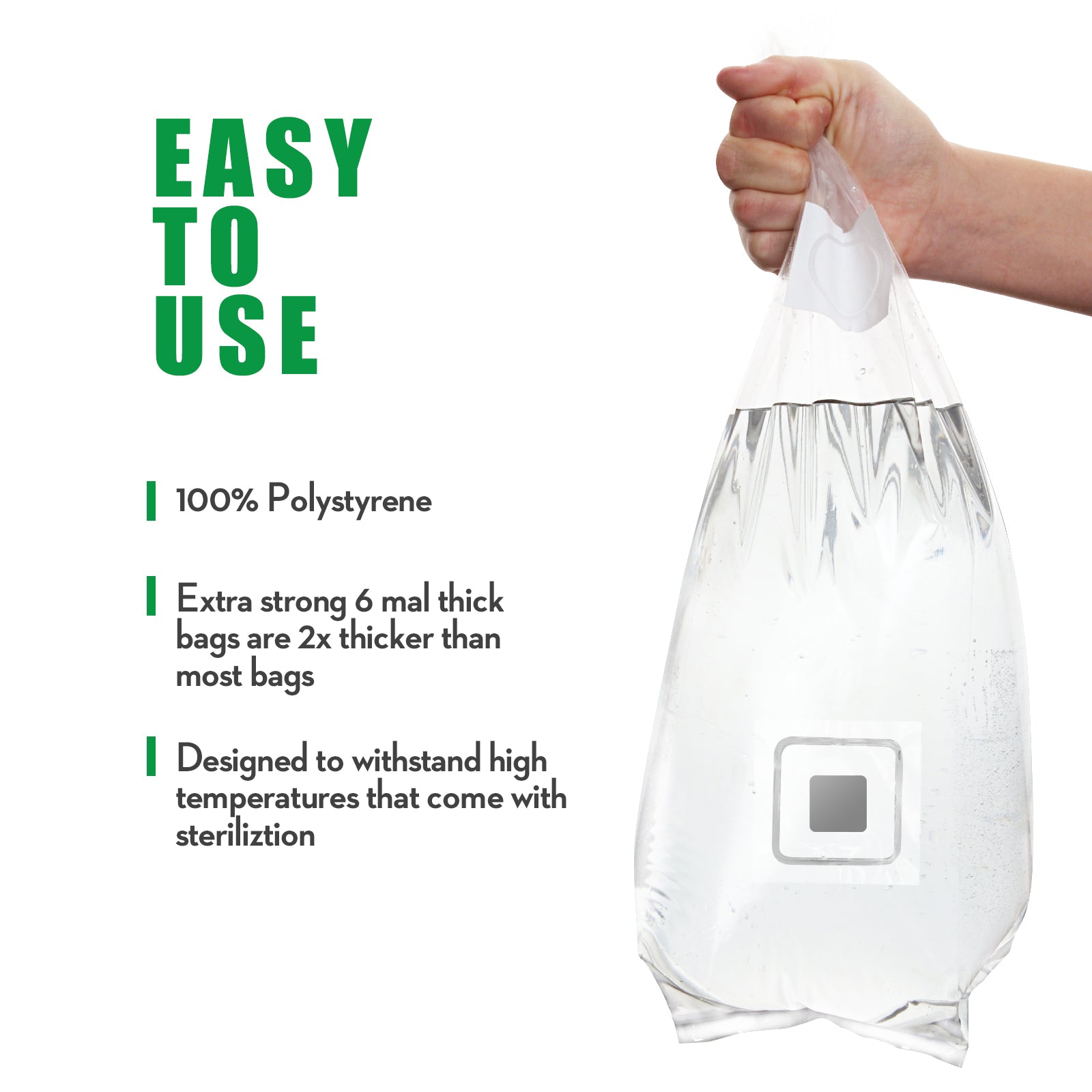 6Mil Polystyrene:Edible mycelium bag 6 Mil thick material, tear-resistant ,durability and clear to visibility of growth progress
