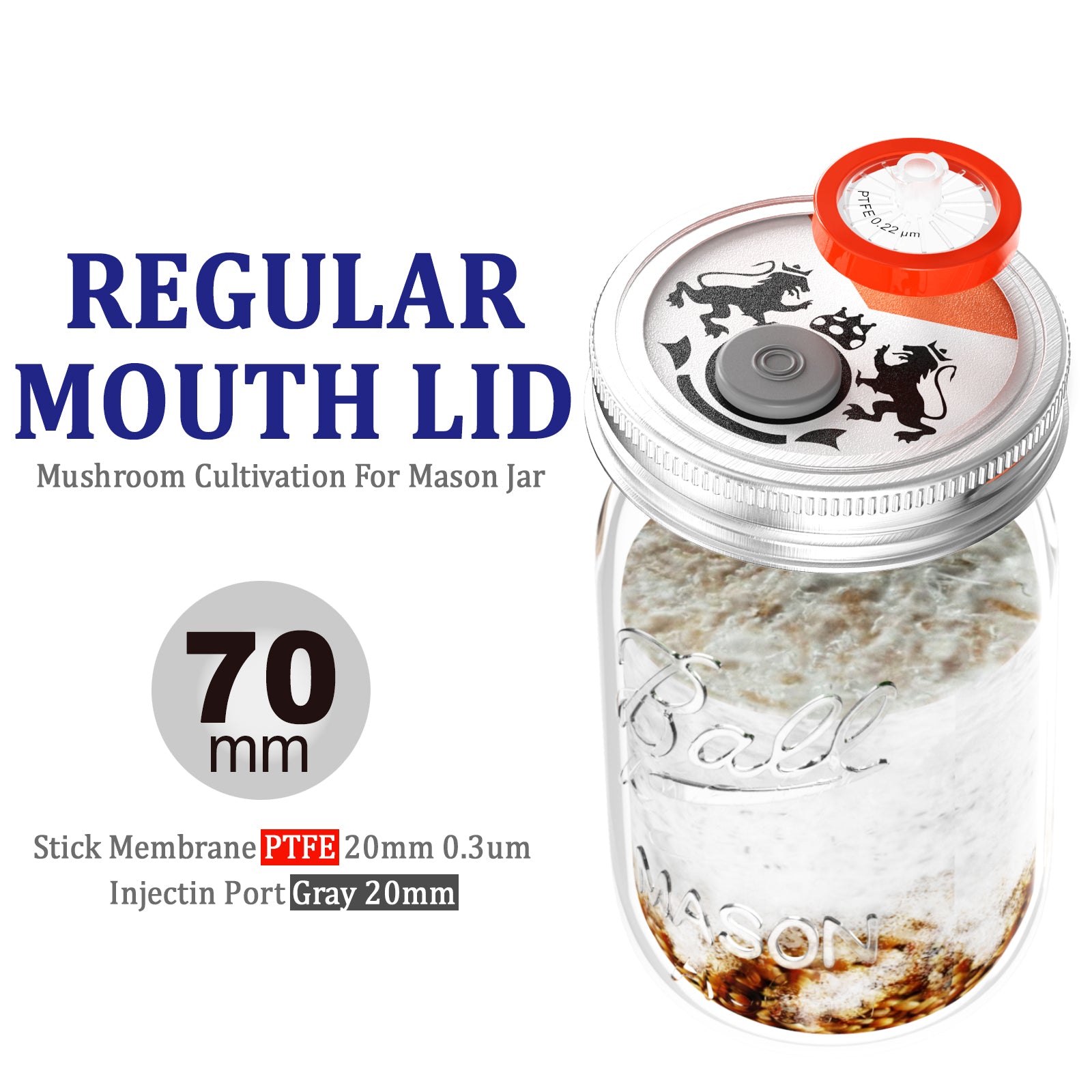 Mushroom Jar Liquid Culture Lid Regular/Wide Mouth Split-type Grain Spawn Cultivation Mason Jar Lid with Split Cartoon Lid PTFE Membrane & Self Healing Injection Ports For Mushroom