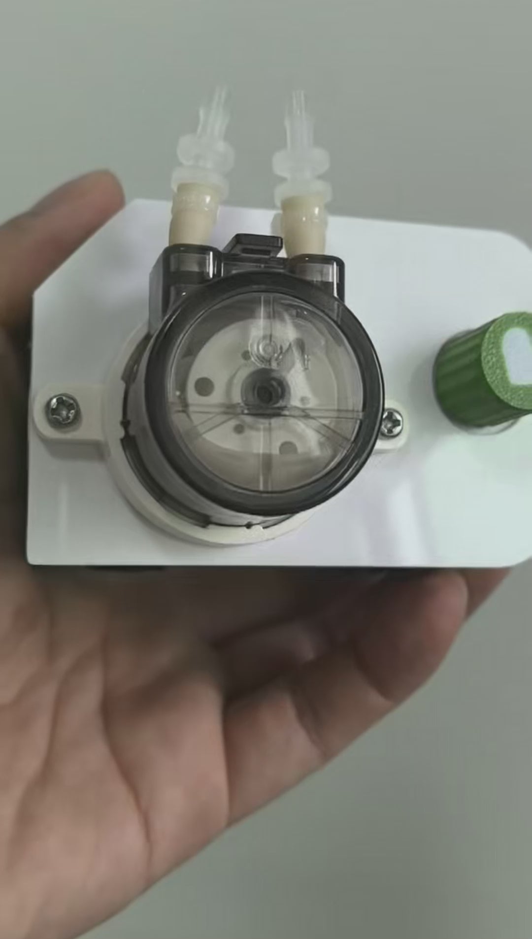Adjustable speed liquid dosing pump compatible with fill needle adapters for precise container filling. Perfect for labs, aquariums, hydroponics, pet feeders, and industrial processes