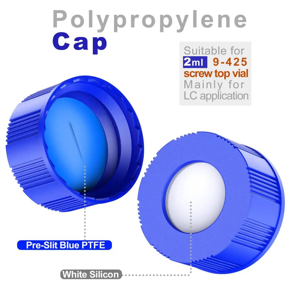 9mm Screw-Thread cap with Pre-slit PTFE Blue /Silicone white septa , pre-slit ! the septa is low extractable that is idea for GC/MS.
