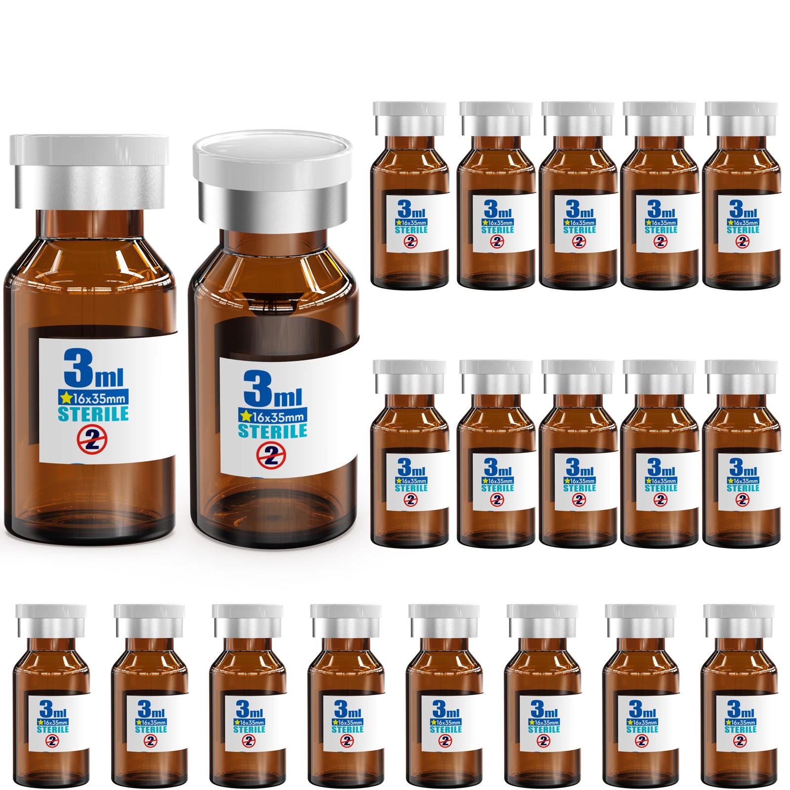 Sterile Glass Vials Sealed with Rubber Stopper and Burr-Free Aluminum Plastics Cap,Clear Borosilicate Glass Storage Vial,Individually Packaged 20pcs